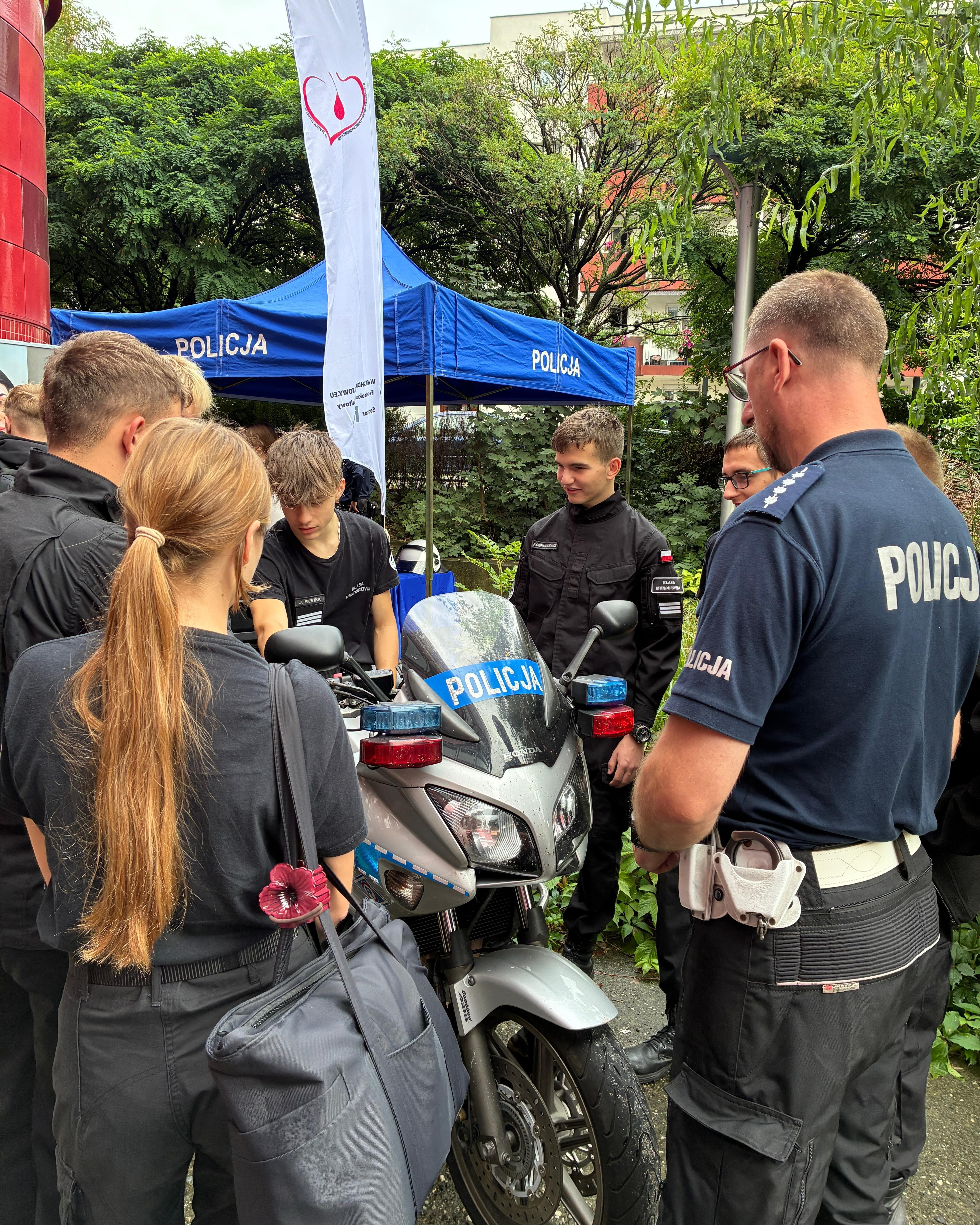 Dodatkowo przygotowano stoisko profilaktyczne na którym Policjanci rozmawiali o zasadach rekrutacji i zachęcali młodych ludzi do wstąpienia w szeregi Policji. Pełnoletni uczniowie aktywnie włączyli się w akcję, oddając krew wspólnie z funkcjonariuszami. Pozostali mieli okazję porozmawiać z Komendantem oraz policjantami o specyfice zawodu, możliwościach rozwoju i znaczeniu działań profilaktycznych.