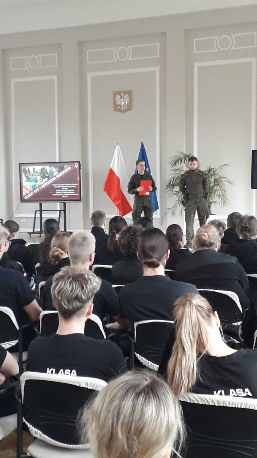 Prelekcja miała na celu przedstawienie uczniom działalności jednostki, przygotowanie młodzieży do przyszłej służby mundurowej oraz kształtowanie postaw proobronnych , patriotycznych i obywatelskich.