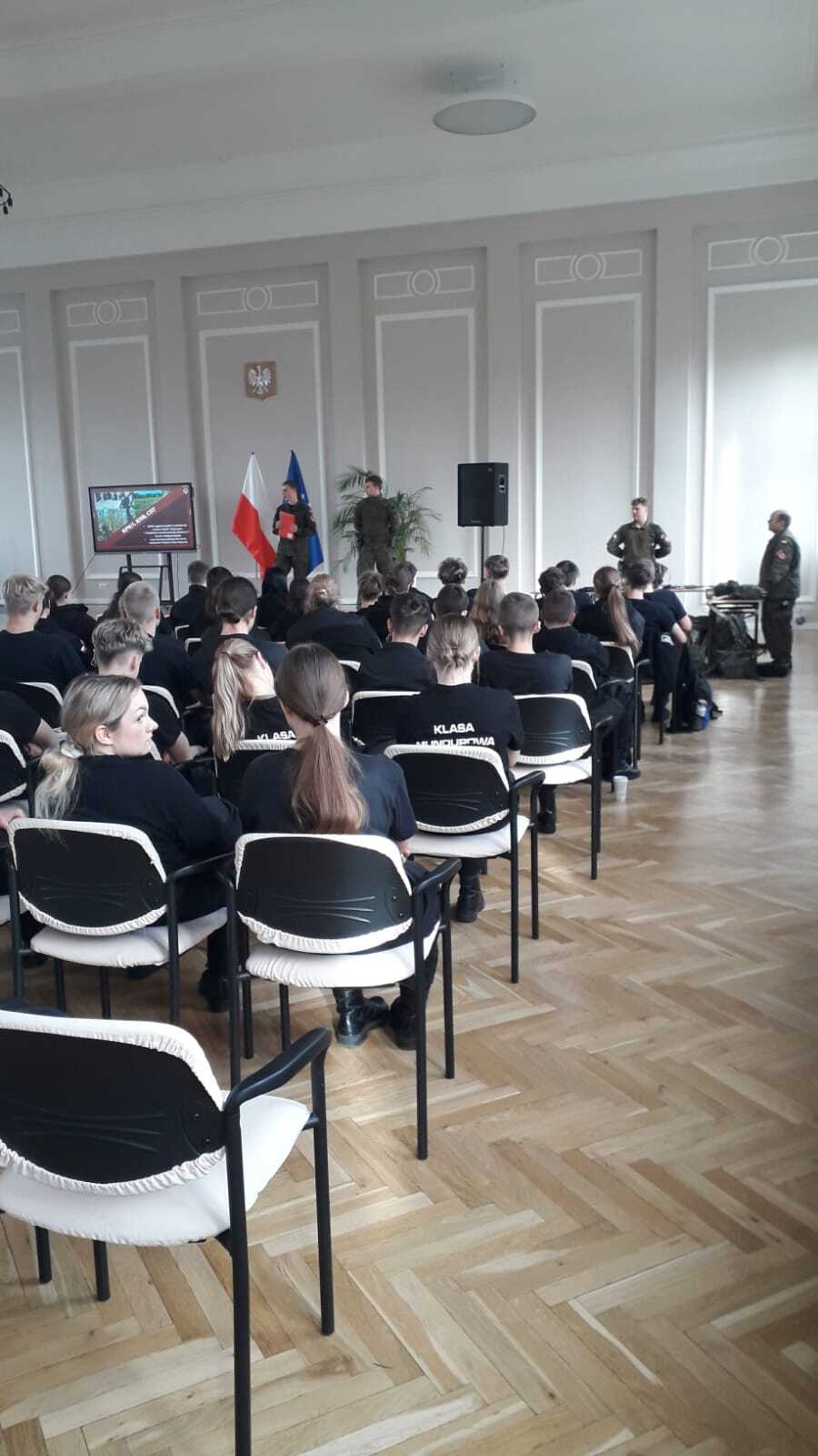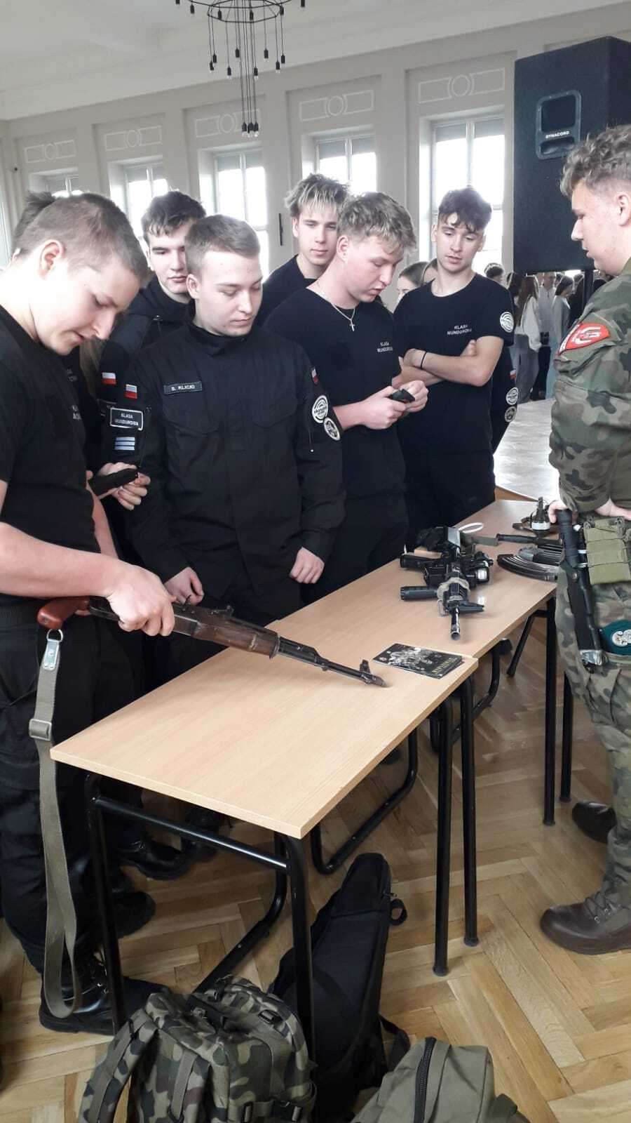 13 listopada w auli szkolnej odbyło się spotkanie klas mundurowych z Jednostką Strzelecką 3054 Racibórz.