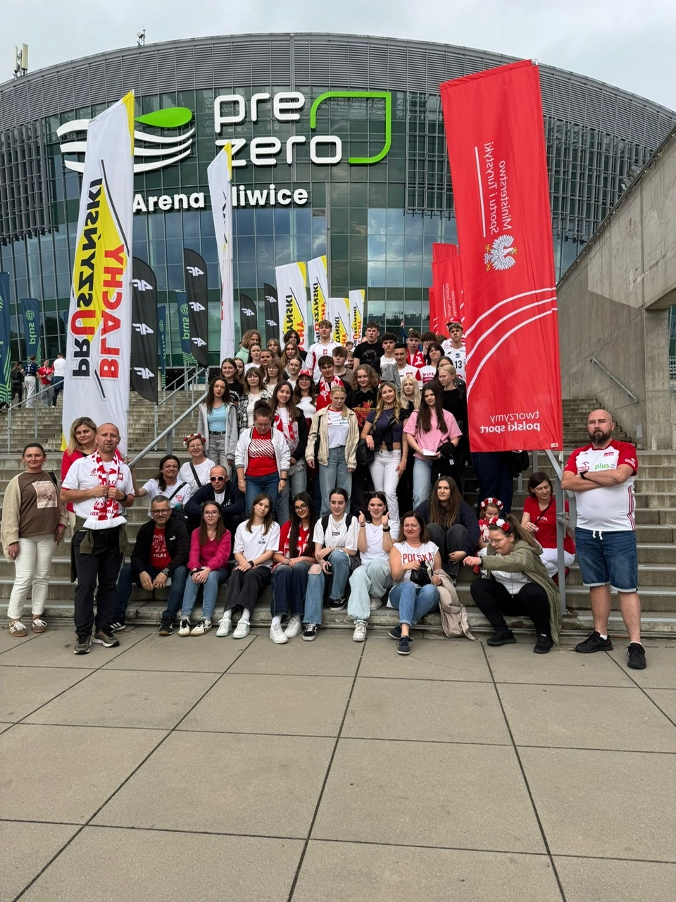 W piątkowe popołudnie uczniowie oraz nauczyciele ZSE Racibórz mieli okazję wspierać dopingiem naszą drużynę narodową podczas meczu Polska – Bułgaria w ramach turnieju Silesia Cup.W jednej z największych i najnowocześniejszych hal sportowych w Polsce – PreZero Arenie Gliwice przy aplauzie wielu tysięcy kibiców Biało-Czerwoni pokonali Bułgarię 3-2.Naszą szkołę na tym spotkaniu reprezentowało prawie sto osób, które swoim dopingiem również pomogło Polsce w odniesieniu sukcesu.