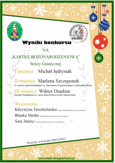 1 miejsce dla Michała Jędrysiaka w konkursie plastycznym pt." Bożonarodzeniowa Kartka Straży Granicznej"