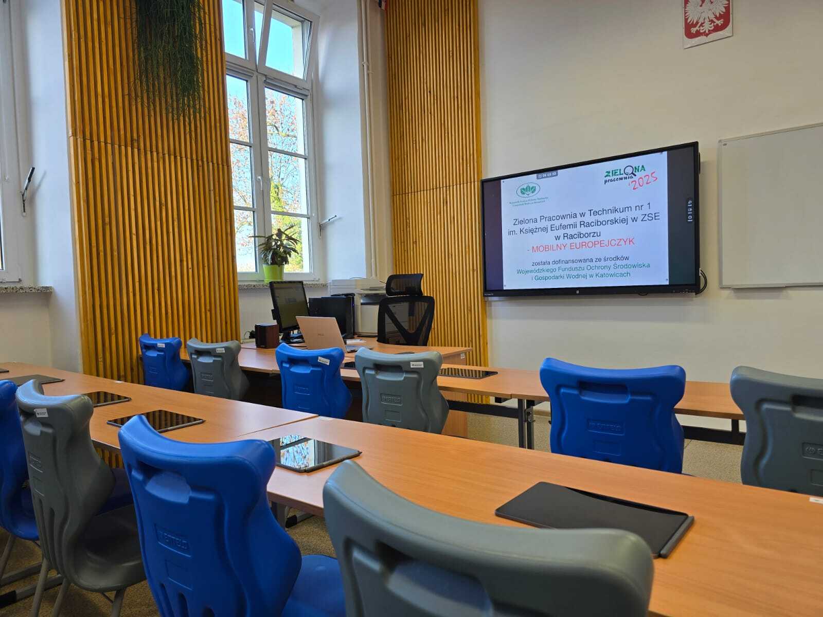 Nasza szkoła wzbogaciła się o kolejną nowoczesną przestrzeń edukacyjną. Dzięki wsparciu WFOŚiGW w Katowicach powstała pracownia Mobilny Europejczyk – miejsce, w którym tradycyjne nauczanie spotyka się z nowoczesnymi technologiami.
