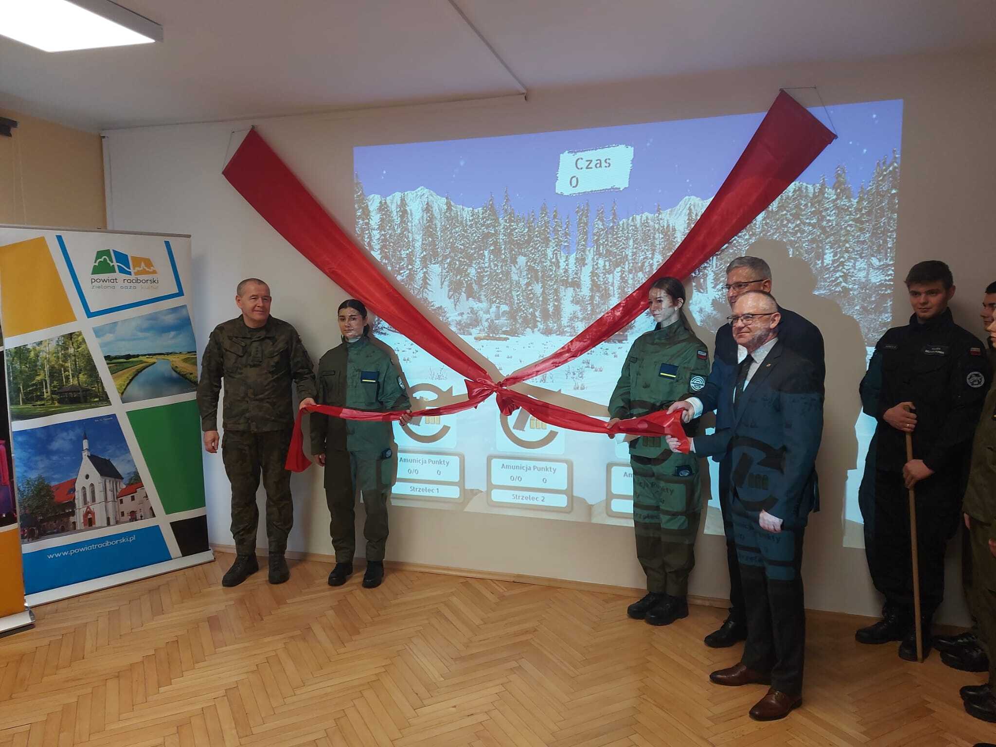 W dalszej części tego wyjątkowego dnia odbyło się uroczyste otwarcie nowoczesnej strzelnicy multimedialnej powstałej w ramach programu „Strzelnica w powiecie 2025”. W otwarciu brali udział m.in. Marek Kurpis –Etatowy Członek Zarządu Powiatu Raciborskiego, Tomasz Cofała – Przewodniczący Rady Powiatu Raciborskiego. Strzelnica posiada na wyposażeniu wysokiej klasy repliki broni krótkiej (pistolety Glock) oraz karabinów AK i Beryl. Sprzęt pozwala na prowadzenie zajęć w warunkach zbliżonych do realnych. Uczniowie będą uczyć się przyjmowania postawy strzeleckiej, zgrywania przyrządów celowniczych oraz ogólnego obycia z bronią. Dowiedzą się jak trzymać różne rodzaje broni, jak je odbezpieczać, przeładowywać, wymieniać magazynek. Strzelnica będzie służyła naszym uczniom ale również uczniom pozostałych szkół oraz stowarzyszeń.