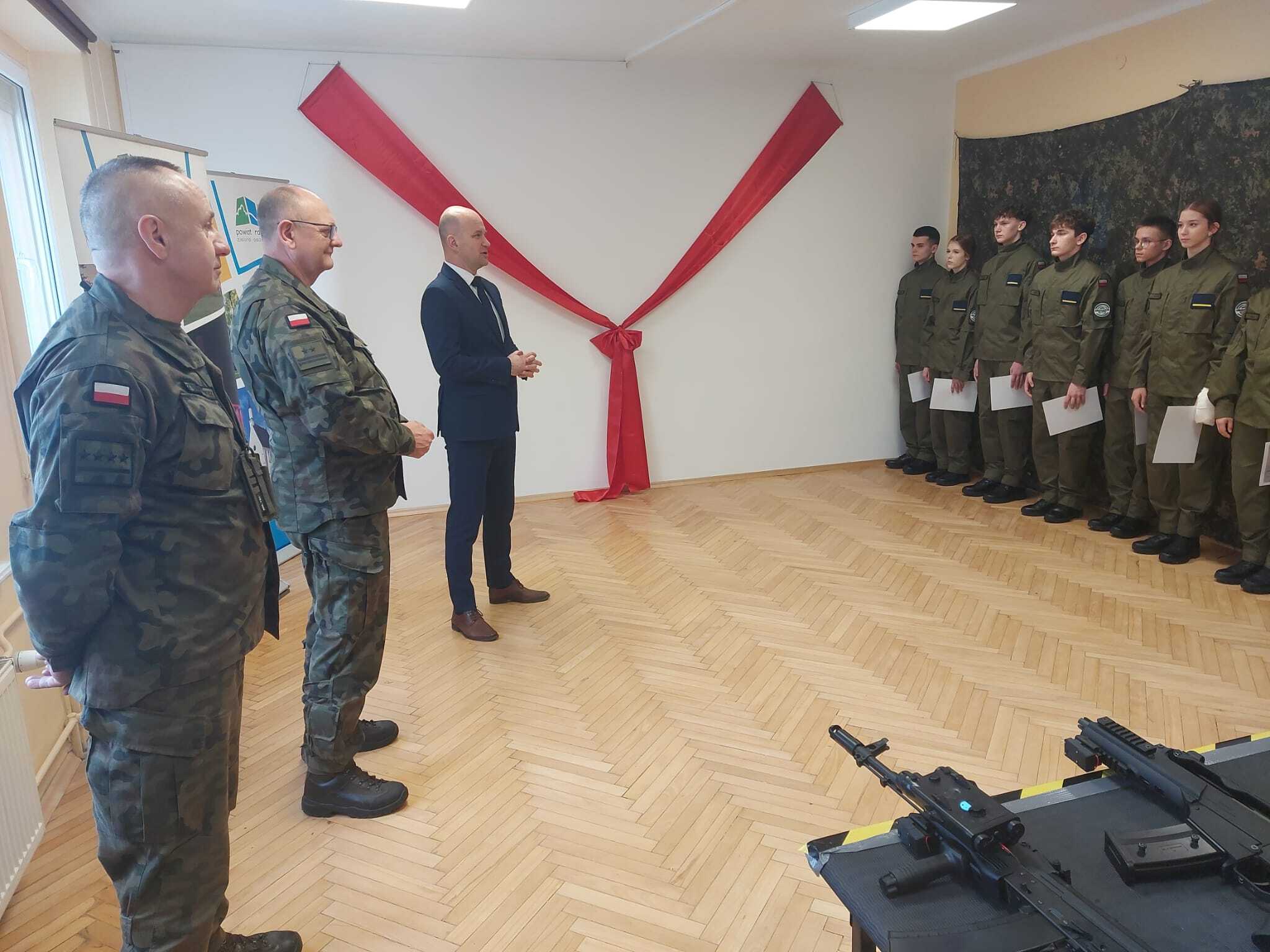 15.01.2026r. w czwartek uczniowie klasy 1L odebrali patenty kadeta OPW oraz uczestniczyli w uroczystym otwarciu strzelnicy. Patenty wręczał uczniom ppłk Andrzej Kuc – Szef Wojskowego Centrum Rekrutacji w Rybniku oraz Dyrektor Zespołu Szkół Ekonomicznych Jacek Pierzchała. Obecni byli także płk Dariusz Kaminiów – Szef Ośrodka Zamiejscowego w Katowicach Centralnego Wojskowego Centrum Rekrutacji oraz płk Paweł Piątkowski – Dowódca 13 Śląskiej Brygady Obrony Terytorialnej. Dla kadetów był to ogromny zaszczyt i wyróżnienie. Oficjalnie zostali mianowani kadetami Oddziału Przygotowania Wojskowego w Zespole Szkół Ekonomicznych w Raciborzu.