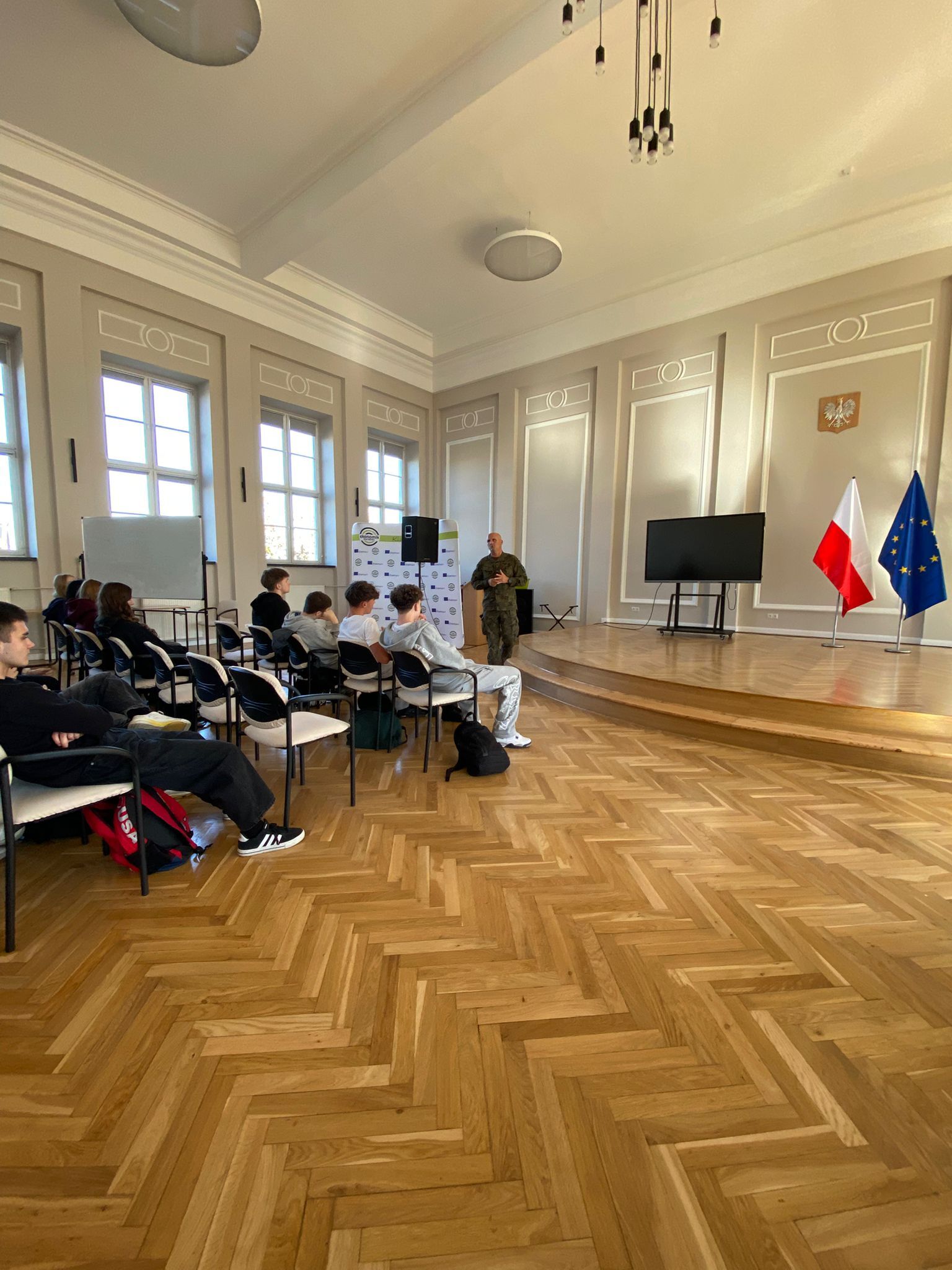 Celem spotkania było zapoznanie się z systemem rekrutacyjnym w służbie wojskowej oraz doświadczeniami i korzyściami związanymi z obronnością kraju.