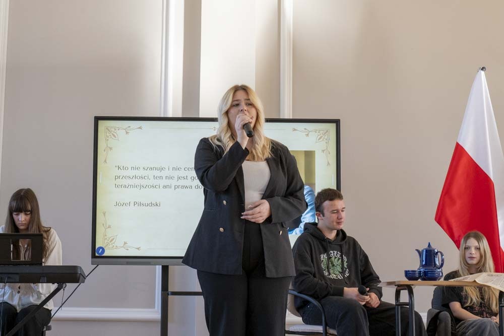 Młodzież przedstawiła spektakl w formie poranku poetycko muzycznego. W spektaklu zostały zaprezentowane utwory takich poetów jak: Krzysztof Kamil Baczyński,
