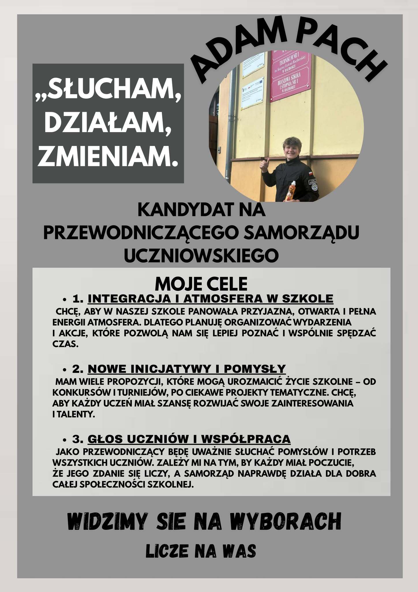 W roku szkolnym 2025/2026 na stanowisko przewodniczącego Samorządu Uczniowskiego kandyduje 6 osób: