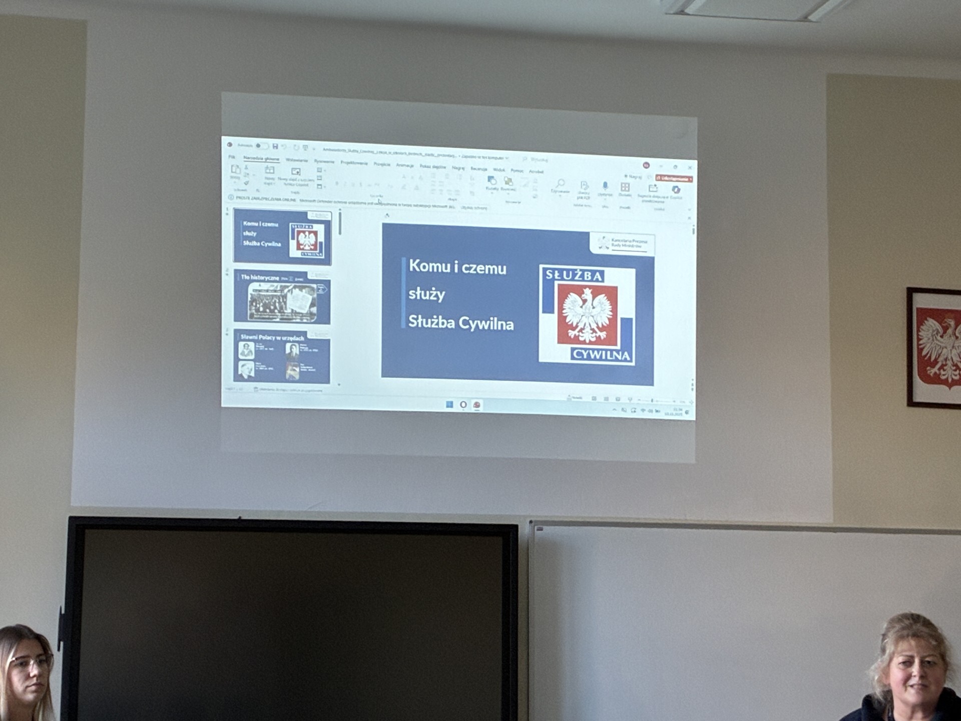 18.11 klasy 3c i 4a miały okazję uczestniczyć w zajęciach organizowanych w ramach Projektu Ambasadorskiego Służby Cywilnej realizowanego przez Urząd Skarbowy. Uczniowie dowiedzieli się czym jest służba cywilna, jakie sektory do niej należą, gdzie można szukać ofert pracy oraz jak załatwiać pewne urzędowe sprawy online za pomocą profilu zaufanego. Dziękujemy za miłe i pouczające spotkanie